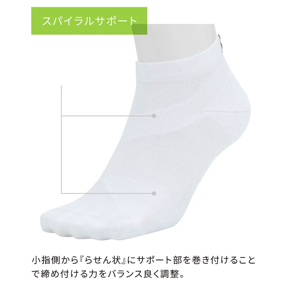 独自のスパイラル構造サポートとグリップ機能により、楽に歩く・走ることをサポートする「MoveSox」。