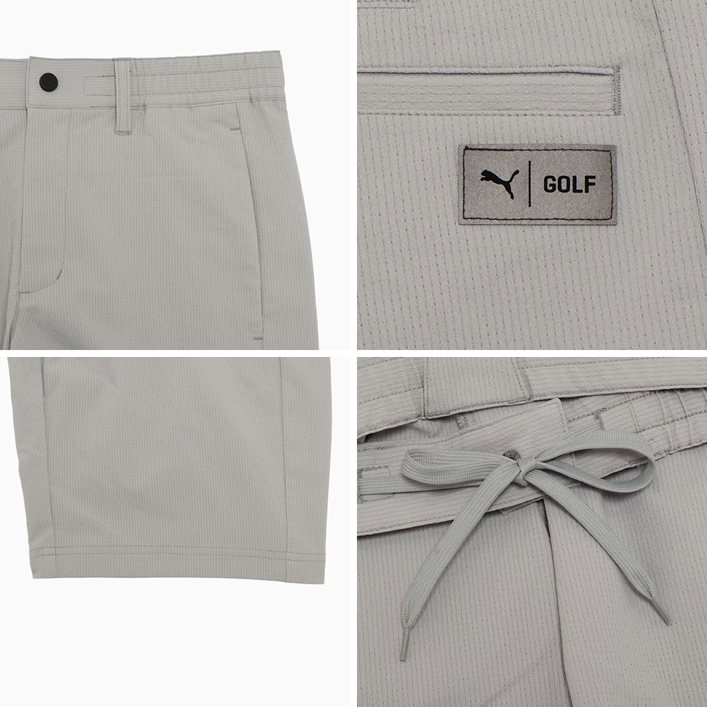 軽量で通気性に優れた素材を採用し、ストレッチ性の高い素材がスムーズなスイングをサポートし、吸汗速乾機能で汗をかいてもさらりとした着心地を保ちます。スタイリッシュなデザインで、ゴルフ場でも街でも着こなせる万能アイテムです。通気性の高い“AMIDO”生地を採用し、脇にはPUMAを象徴するT7カットラインを施すことで、スポーティーで洗練された印象に。横方向へのストレッチがしっかり効いているため、動作時のストレスも軽減されます。サイドポケットやプーマゴルフロゴなどのディテールも程よいアクセントとなり、デザイン性と機能性の両方を求める方におすすめのショーツです。
