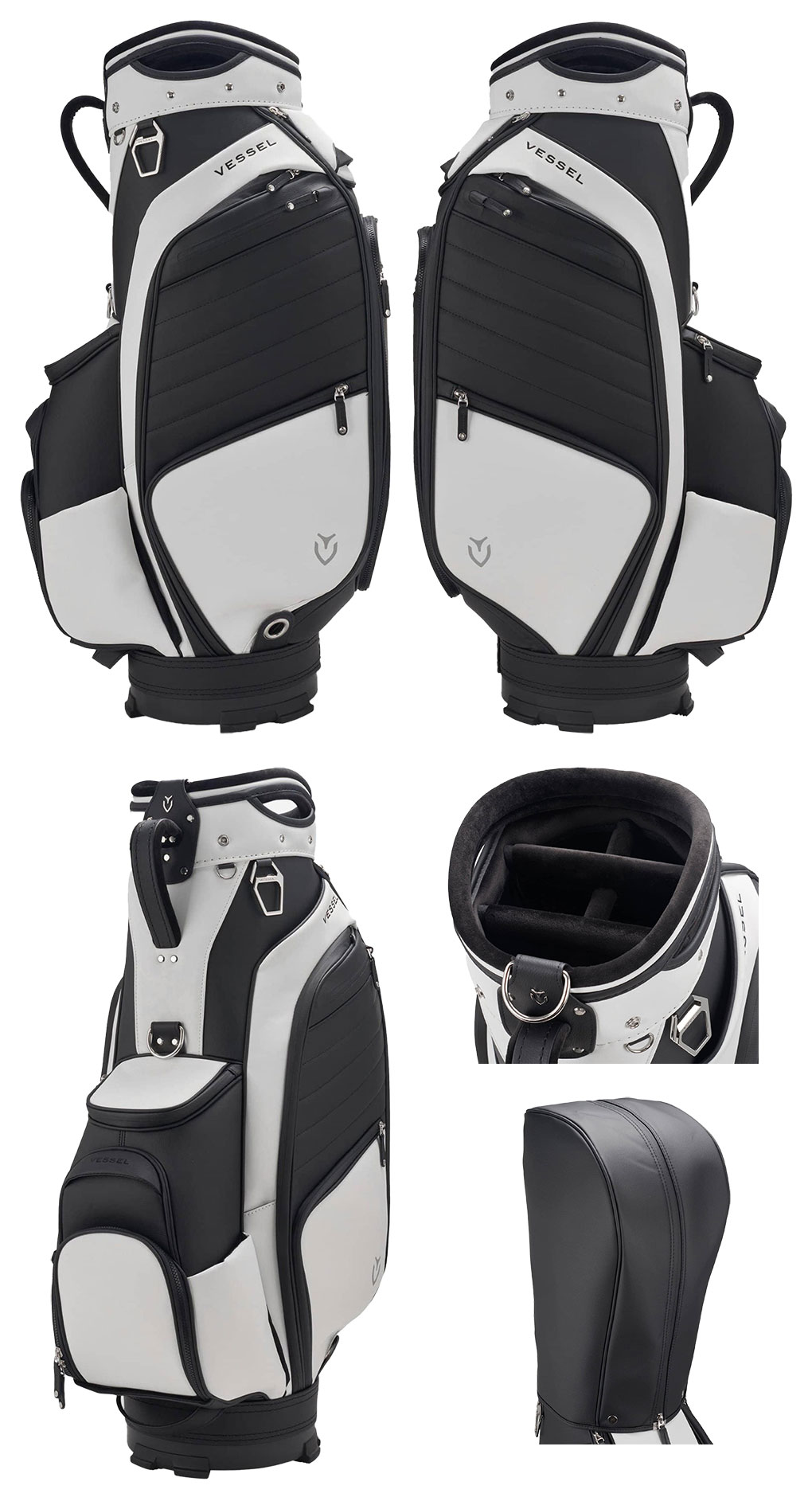 【毎日発送】VESSEL Lux Midsize Staff キャディバッグ 6分割トップ ホワイト/ブラック ベゼル 2023年モデル USA直輸入品