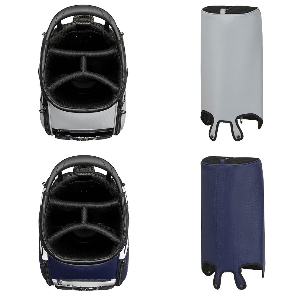 圧倒的エースの存在感を放つ、オーセンティックなデザインと高い機能性を兼ね備えた本格派モデル。サイド部に大きなロゴと成形モールドパーツをデザインし高級感と存在感をアップ。正面や背面に様々なサイズのポケットを配置し、アイテムごとに機能的に収納が可能。クラブを出し入れしやすい9.5型。常にベストを目指すゴルファーが満足できる高機能キャディバッグ。