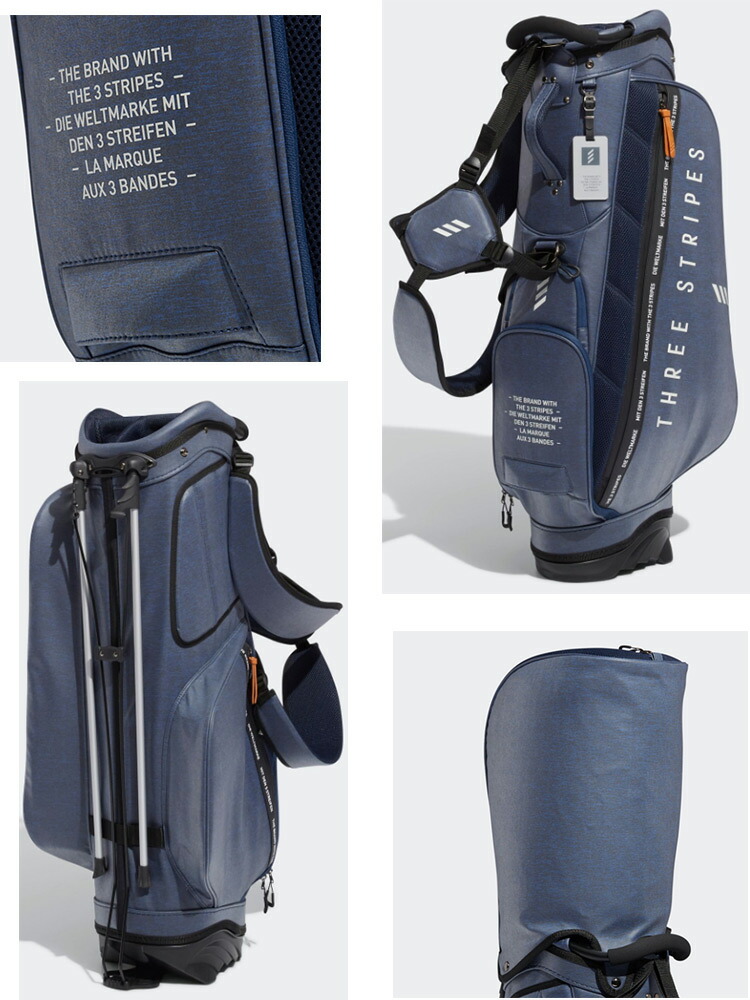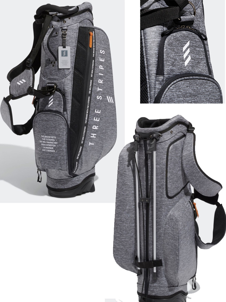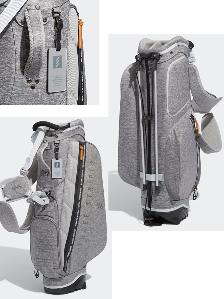 コースに映える、adidas Golfのブランディングを施したヘザー柄のバッグ。