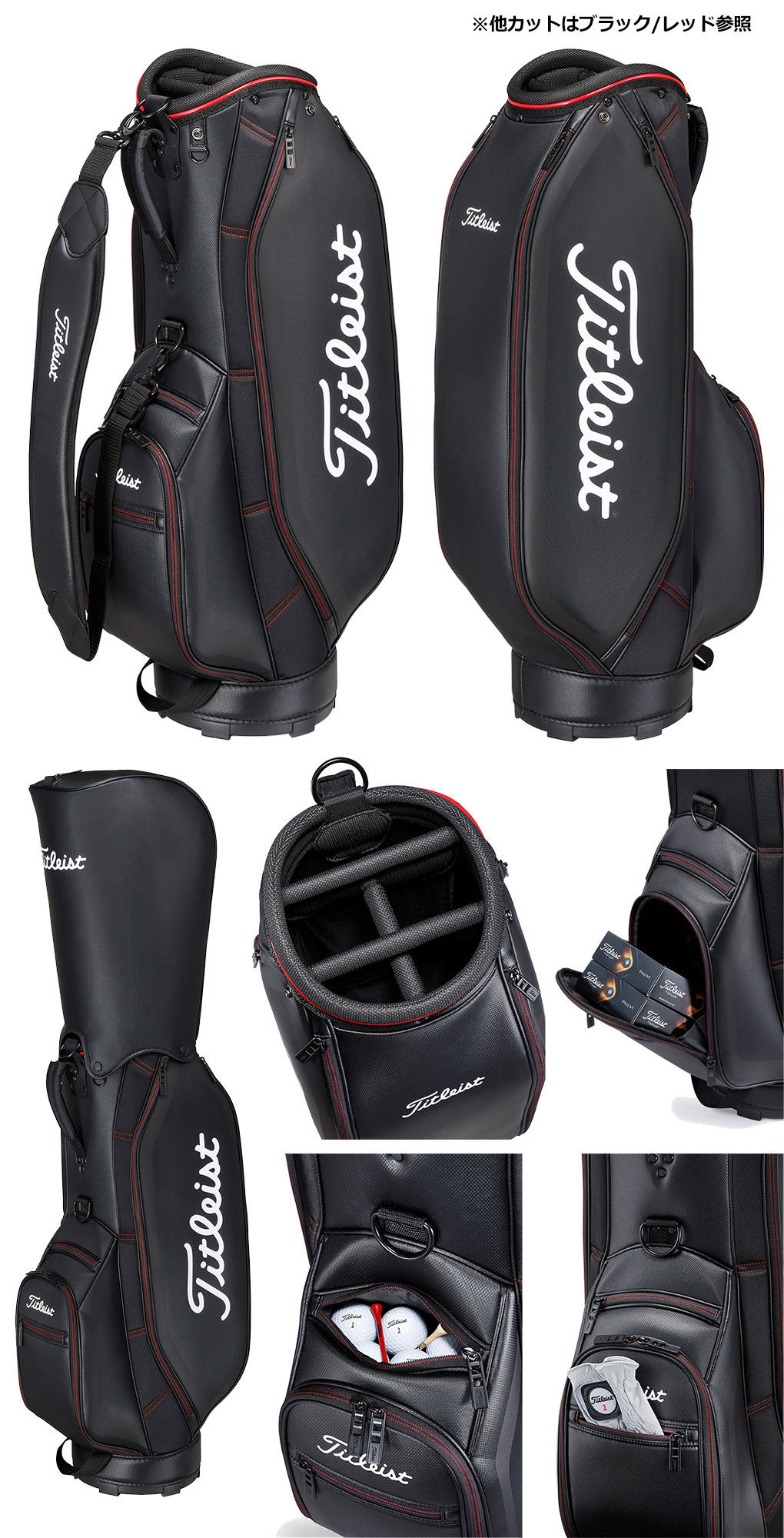 【毎日発送】タイトリスト アスパイア キャディバッグ 9型 TB23ACBA 47インチ対応 キャディバッグ ブラック/レッド 日本正規品 2023年モデル