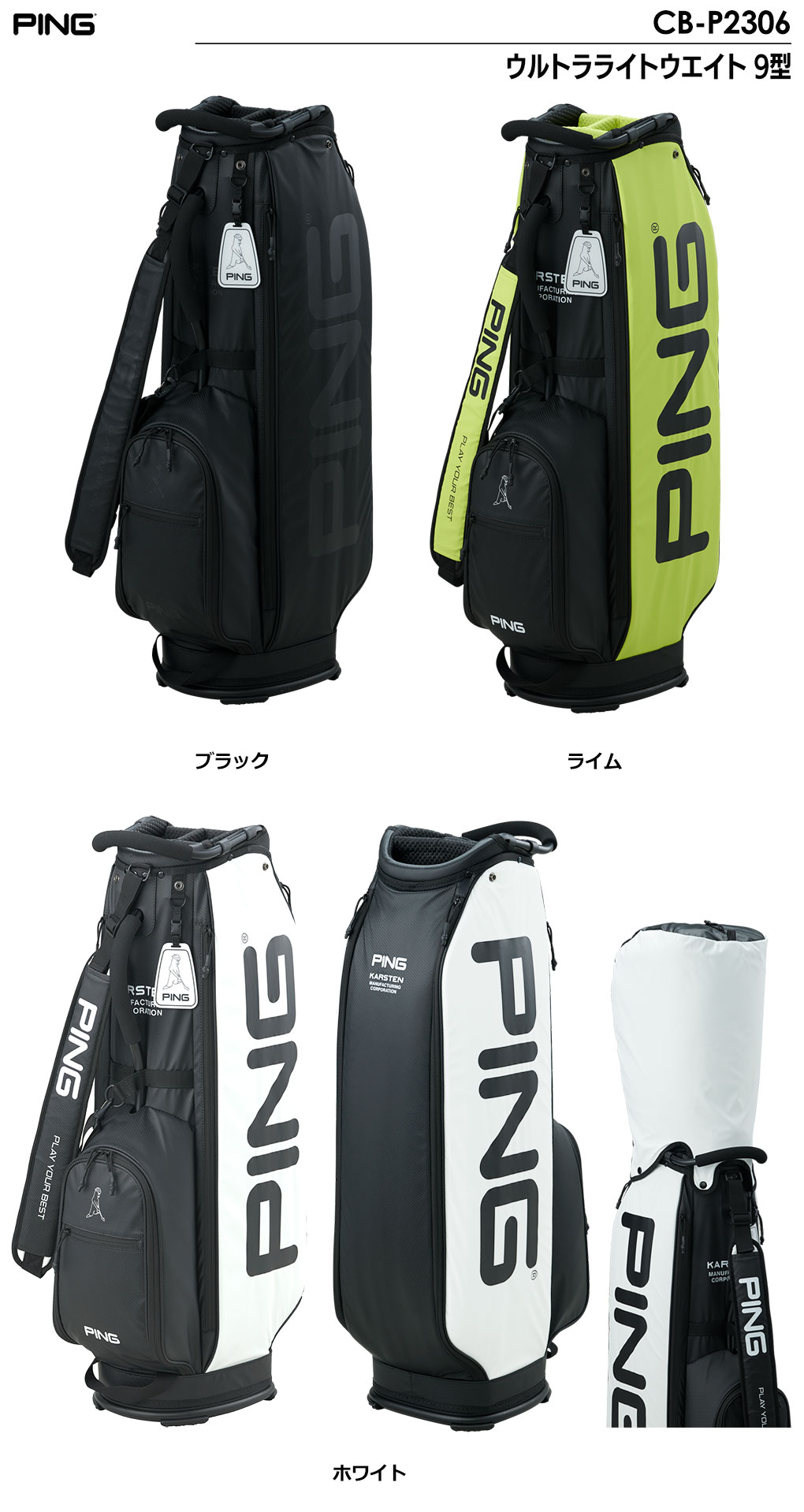 ピン PING キャディバッグ CB-P2306 ウルトラライトウエイト 9型 軽量 47インチ対応 2023年モデル 日本正規品 日本モデル ゴルフ ゴルフバッグ