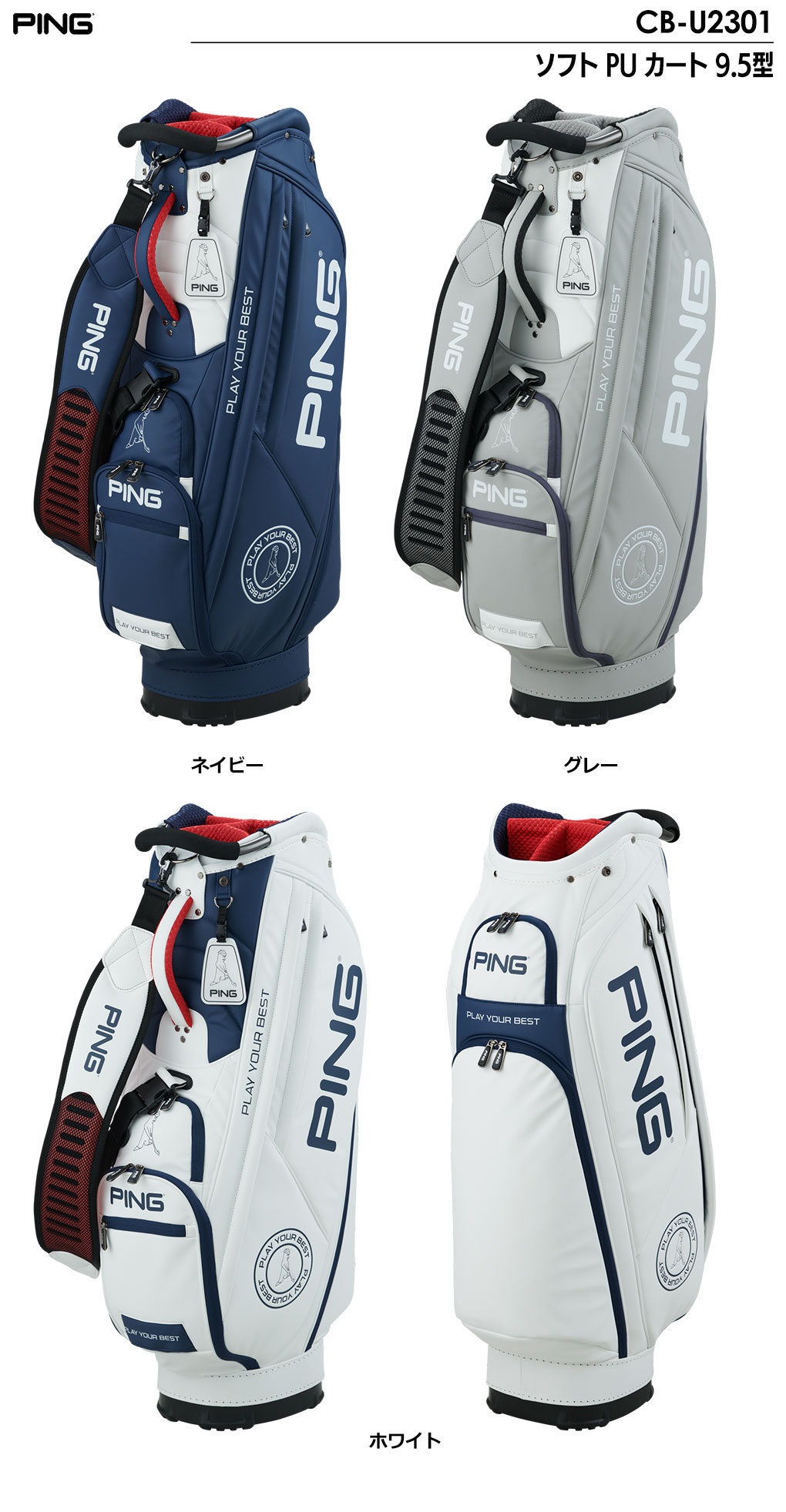 ピン キャディバッグ CB-U2301 ソフト PU カート 9.5型 47インチ対応 PING 2023年モデル 日本正規品
