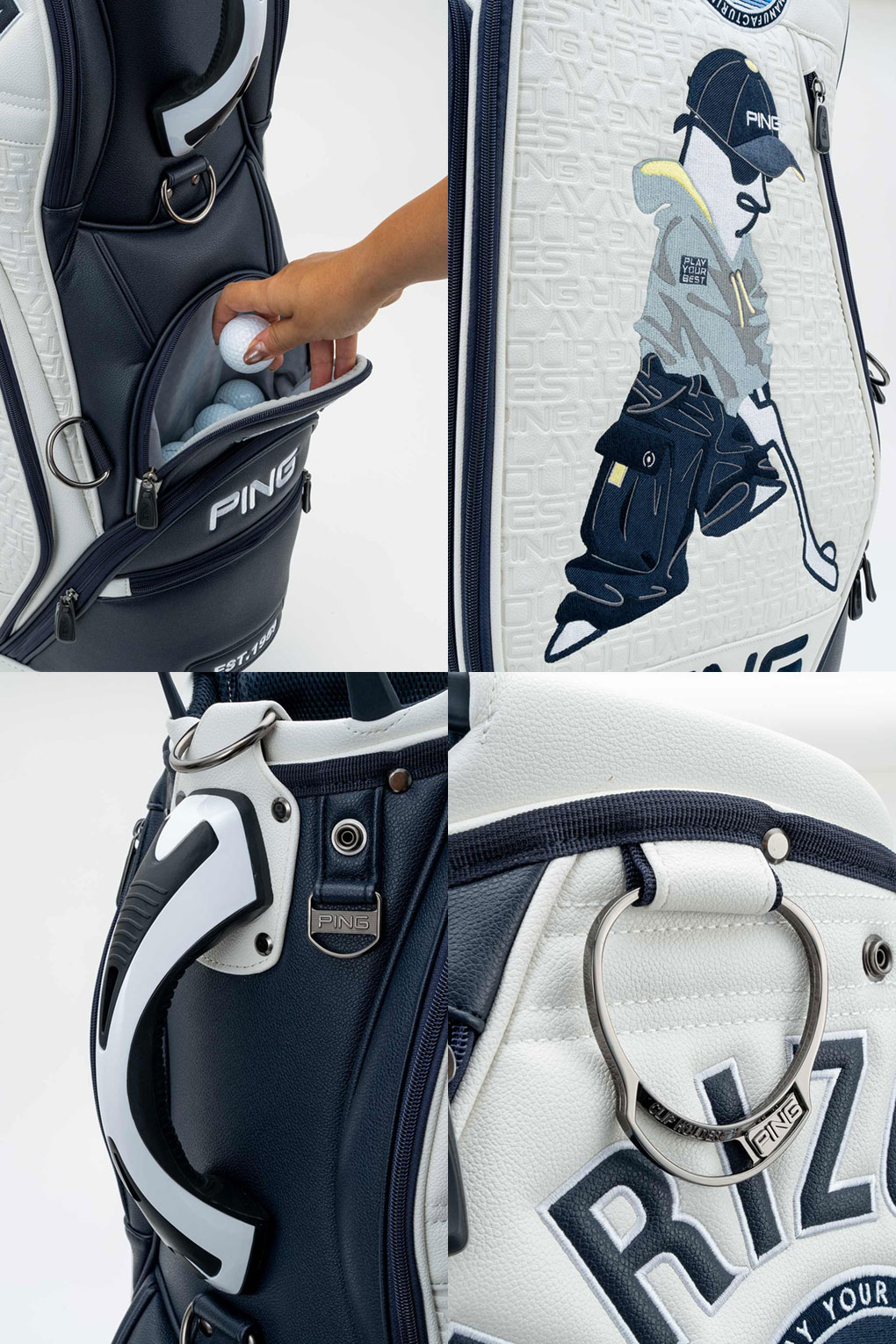 ・高級感のある合成皮革に圧倒的存在感のある刺繍加工でMr.PINGを表現
