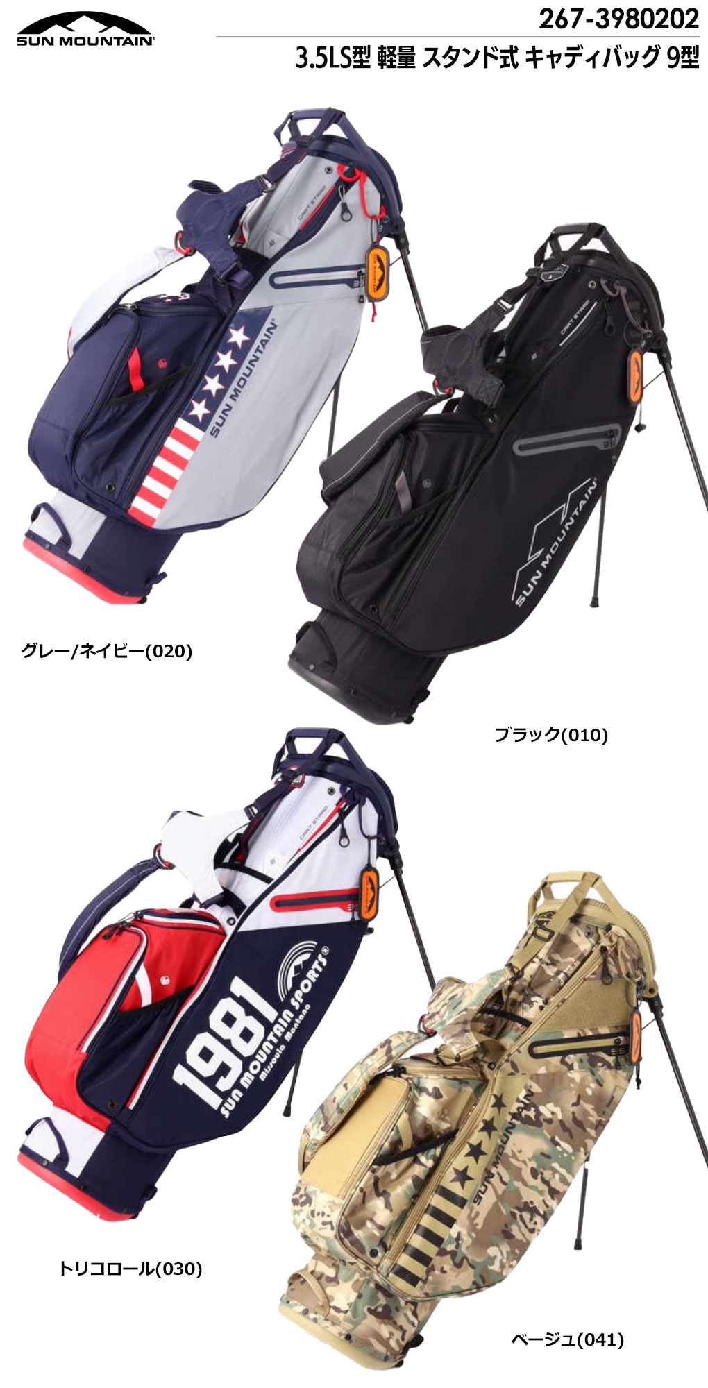 【毎日発送】サンマウンテン 3.5LS型 軽量 スタンド式 キャディバッグ 9型 267-3980202 SUN MOUNTAIN 2023年モデル 日本正規品