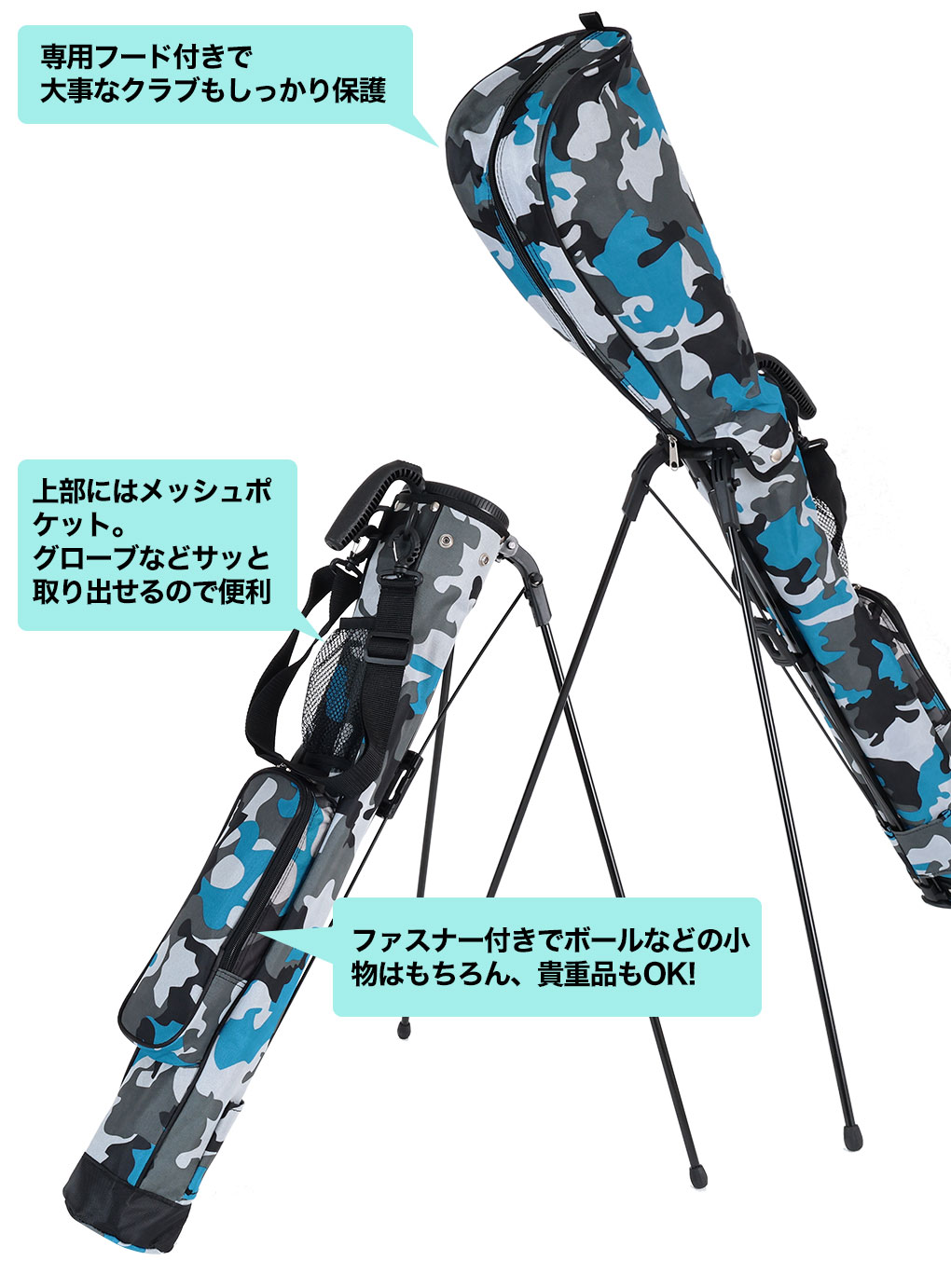 セルフプレーに、練習場に持ち運び便利なスタンドバッグ 軽量 低価格実現