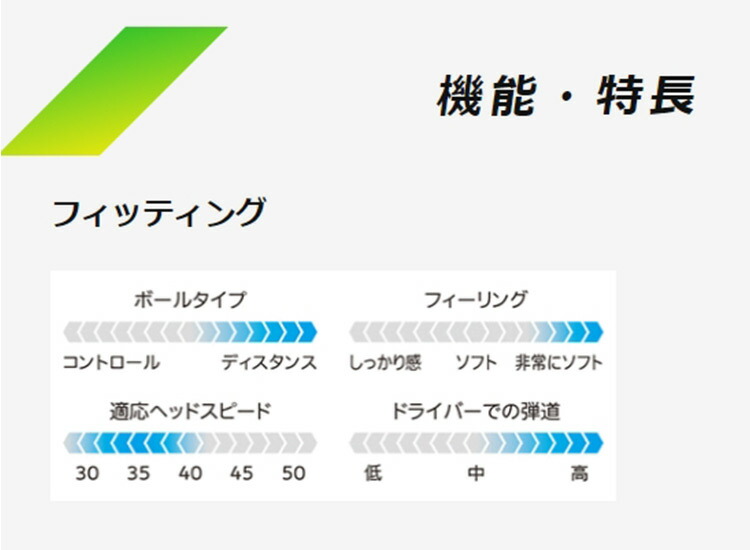 ソフトなコアにより全てのショットでソフトな打感を実現します。また、スピンを抑えて直進性を高めています。