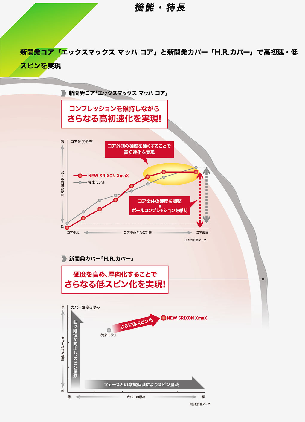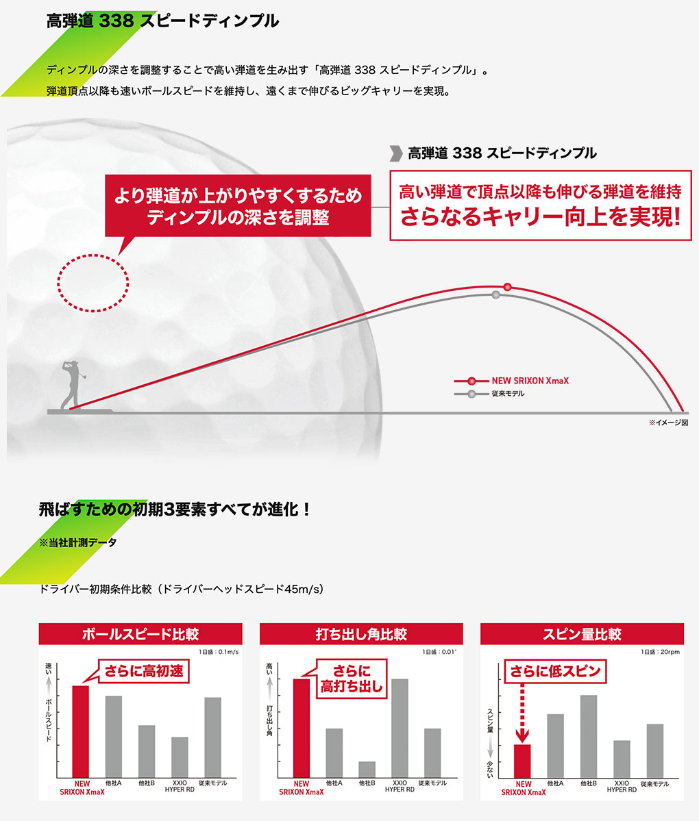■ ミッド:スーパースピード ミッド ■ コア:エックスマックス マッハ コア ■ ディンプル:強弾道 338 スピードディンプル
