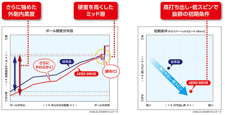 従来品に比べ外剛内柔度合を強めた「高反発大径スーパーソフト Neo E.G.G.※1コア」と、高硬度化した