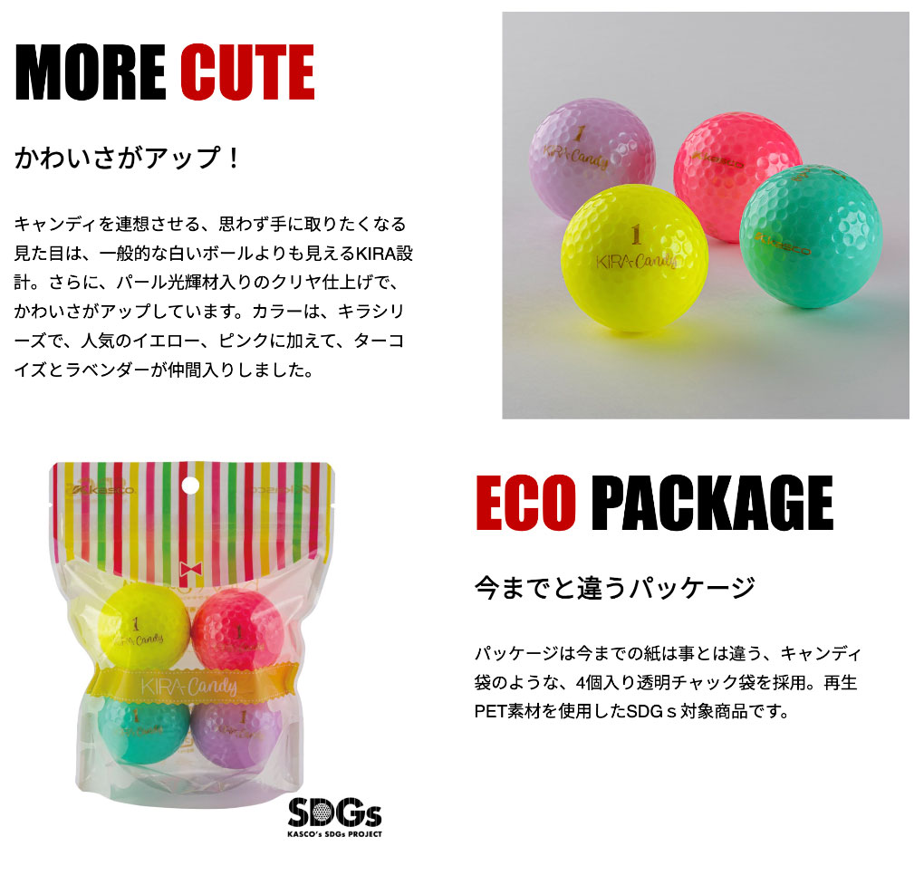 キャスコ KIRA Candy ゴルフボール 4球入り レディース専用ボール 公認球 KASCO 2025年モデル 日本正規品
