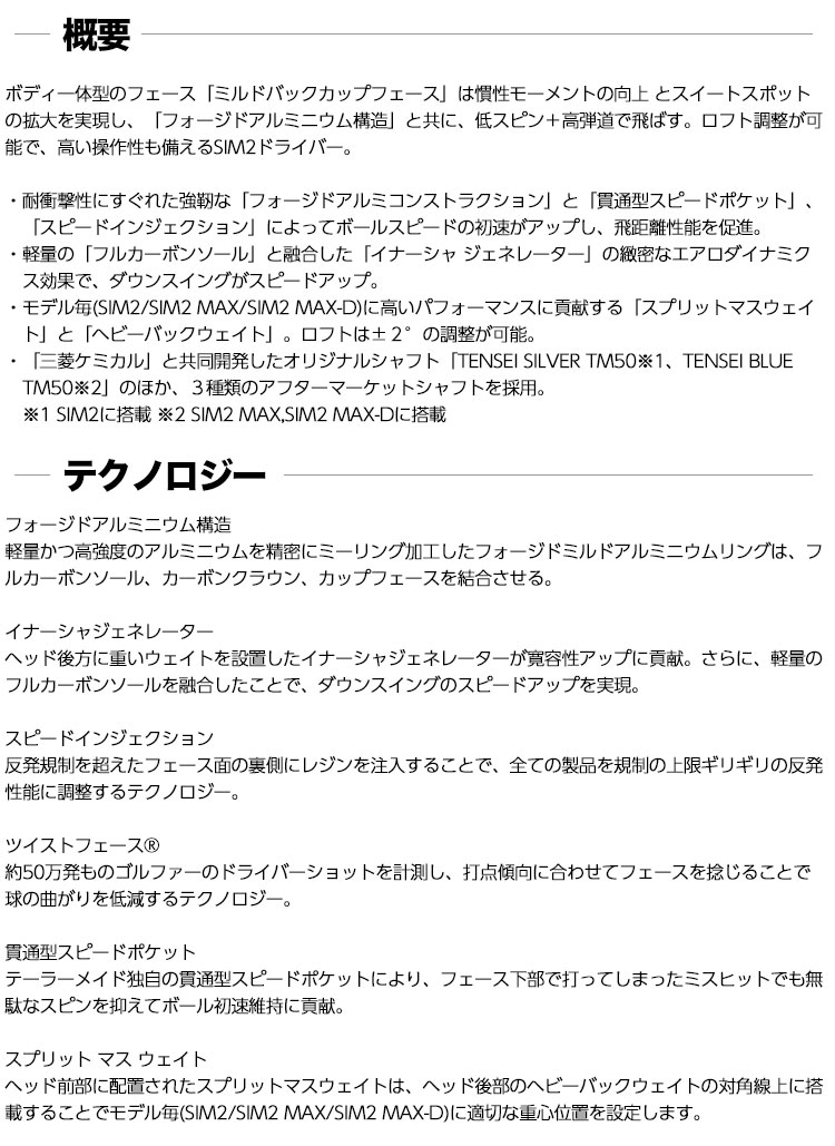 レフティー SIM2 ドライバー シム2 左用 TaylorMade USモデル 2021年2月発売