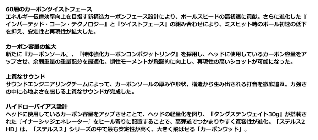 ヘッド素材 / フェース素材 チタンフレームボディ [9-1-1 ti] + 6層カーボンクラウン + 9層カーボンソール + 特殊強化カーボンコンポジットリング + フロントTSSウェイト / 新60層カーボンツイストフェース + PUカバー