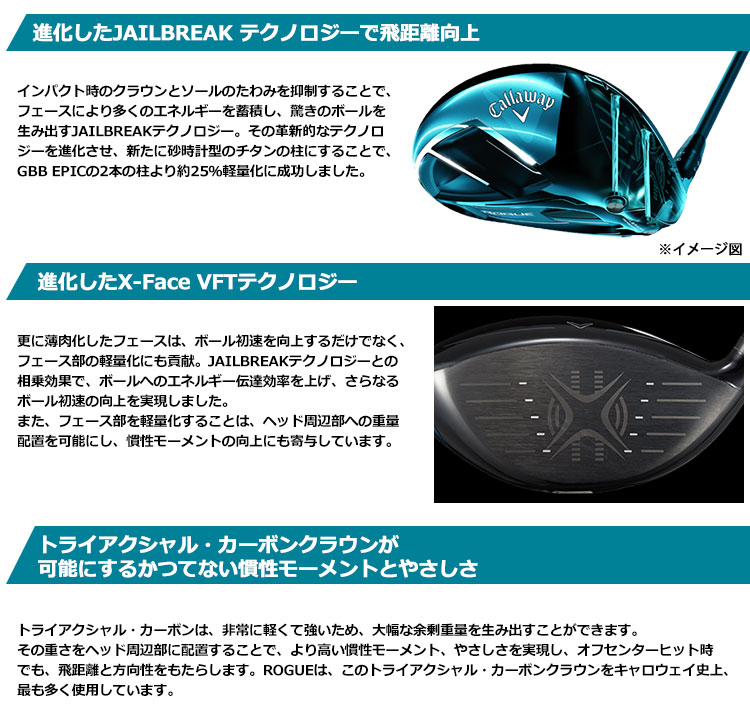 スライス軽減!つかまりやすい"ドローバイアス設計"のROGUEドライバー!