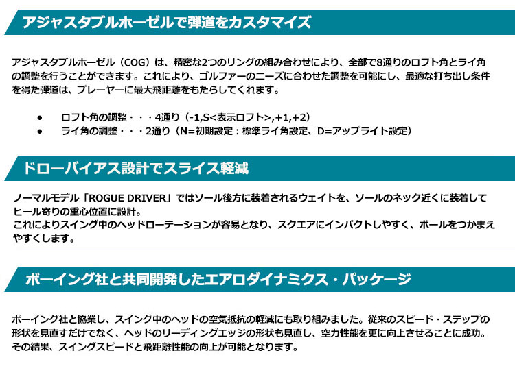 USAモデル「ROGUE DRAWドライバー」は、日本の「ROGUE STARドライバー」に近いモデルです。