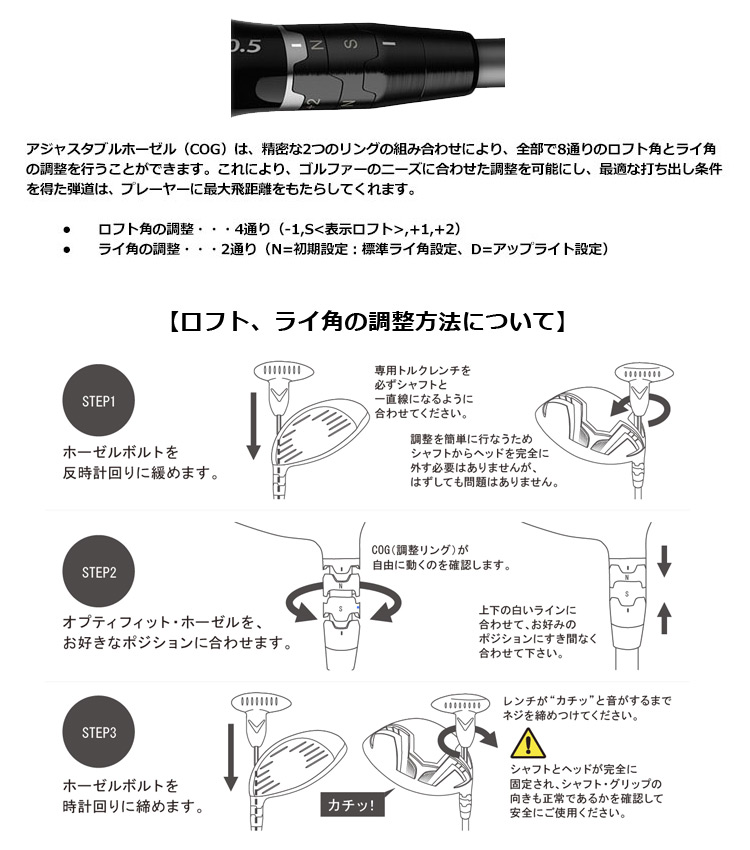 また、ここにキャロウェイ独自のアジャスタブルホーゼルが加わることで、さらにきめ細かな弾道のカスタマイズが可能となっています。