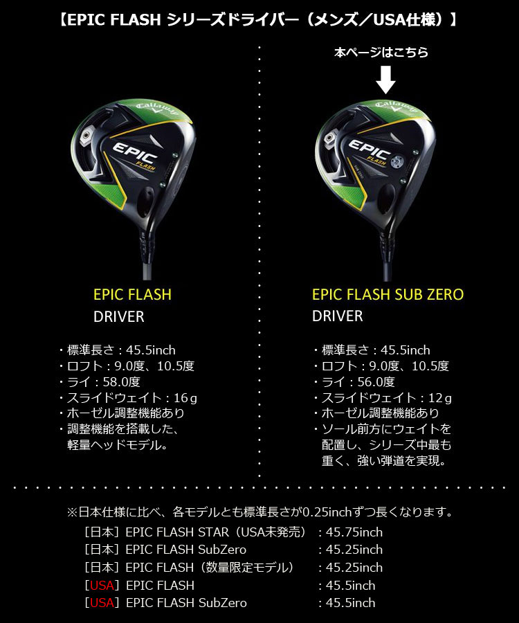 JYPERS JEEP ジーパーズ ジープ 送料無料 ゴルフクラブ GOLF CLUB CALLAWAY キャロウェイ 2019 EPIC FLASH エピック フラッシュ サブゼロ SUBZERO SubZero 石川遼 上田桃子 ドライバー DR DRIVER US USA アメリカ 直輸入品