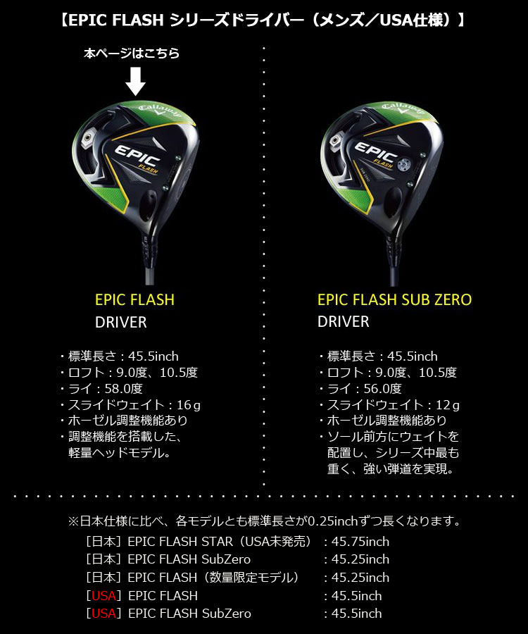 JYPERS JEEP ジーパーズ ジープ 送料無料 ゴルフクラブ GOLF CLUB CALLAWAY キャロウェイ 2019 EPIC FLASH エピック フラッシュ 石川遼 上田桃子 ドライバー DR DRIVER カーボンシャフト USA US US仕様 アメリカ 直輸入 左用 レフティー