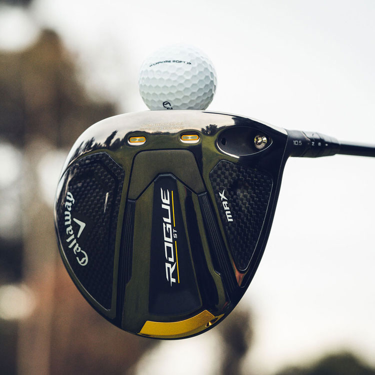 ROGUE STドライバーシリーズでは、新たにタングステン・スピードカートリッジを採用しました。2021年のEPICシリーズではスクリューウェイト、およびペリメーター・ウェイトをソール後部に搭載していましたが、タングステン・スピードカートリッジは横に長い形状で、搭載位置もヘッドの最後方部に移動。重心をより深く、低くすることができており、高い慣性モーメントによってスイング時のヘッドの安定化と、オフセンターヒット時のボール初速向上を実現しています。なお、「ROGUE ST MAXドライバー」は、ややドローバイアス気味の特性を持つヘッドとなっています。