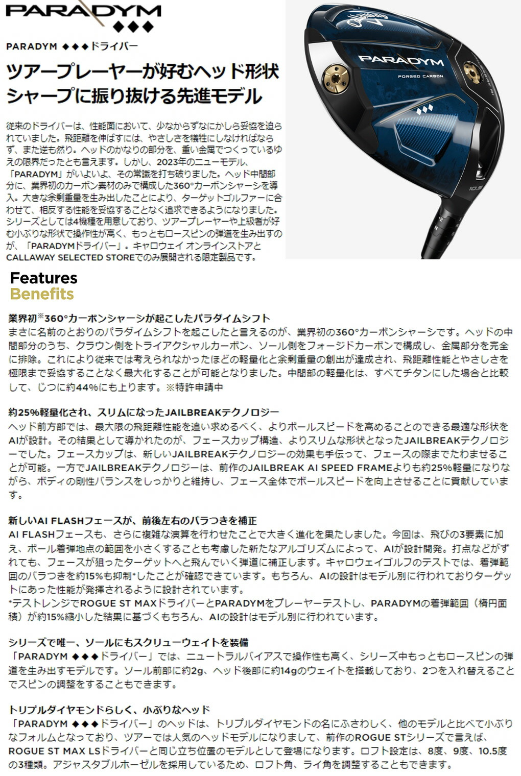 2023年2月発売 ドライバー ゴルフクラブ パラダイム Callaway 右利き 2023年モデル USモデル
