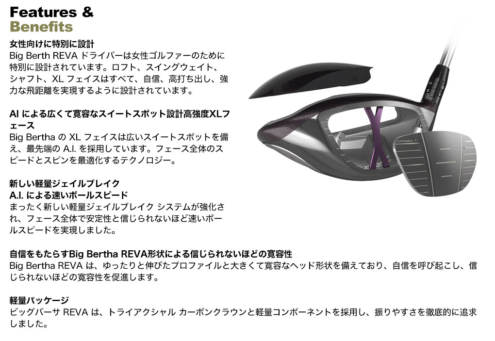 キャロウェイ Women's Big Bertha REVA Driver ドライバー レディース 右用 BB23 RCH 40 WOMENS カーボンシャフト USA直輸入品 2023年モデル