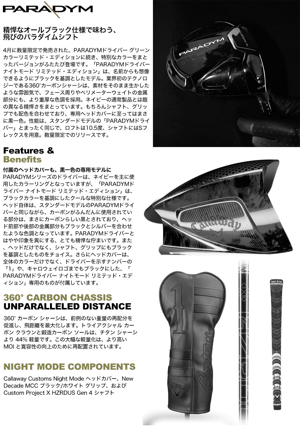 限定モデル ドライバー ゴルフクラブ 1W パラダイム ナイトモード