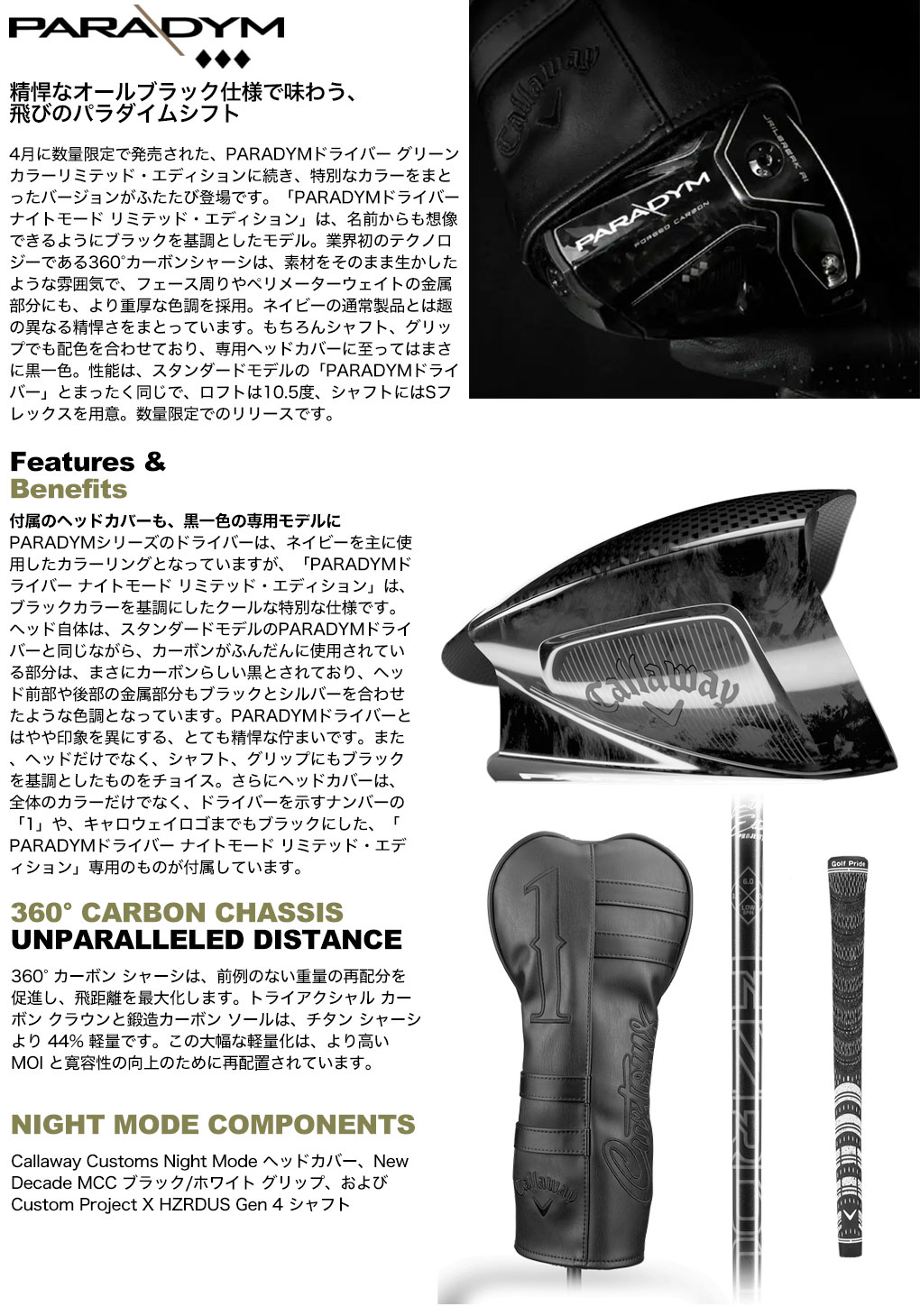 限定モデル ドライバー ゴルフクラブ 1W パラダイム ナイトモード