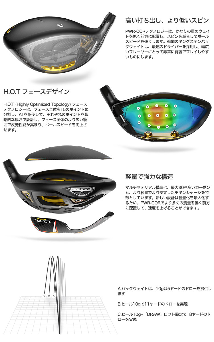 コブラ 2022 LTDx MAX Tour Length ドライバー Red メンズ 右用 Tensei AV Raw White 65 カーボンシャフト装着 USA直輸入品