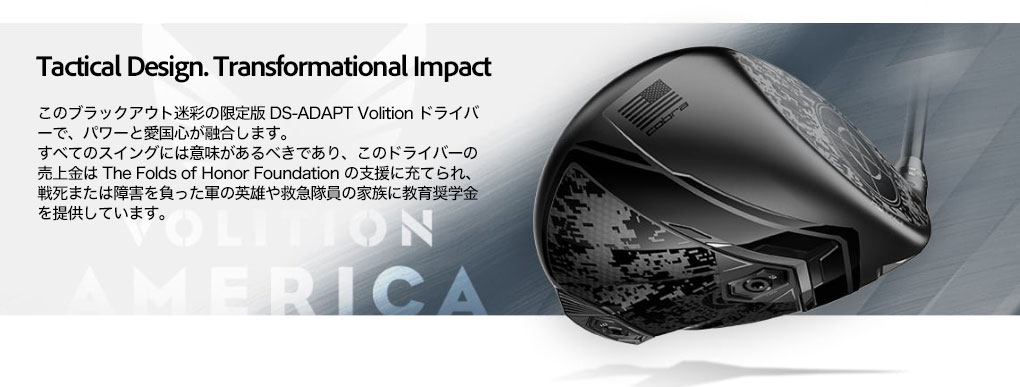 限定版DS-ADAPT MAX-K Volitionドライバーは、ブラックアウトカモフラージュデザインでパワーと愛国心を融合させています。このドライバーの売上金は、戦死または障害を負った軍の英雄や救急隊員の遺族に教育奨学金を提供するFolds of Honor財団に寄付されます。