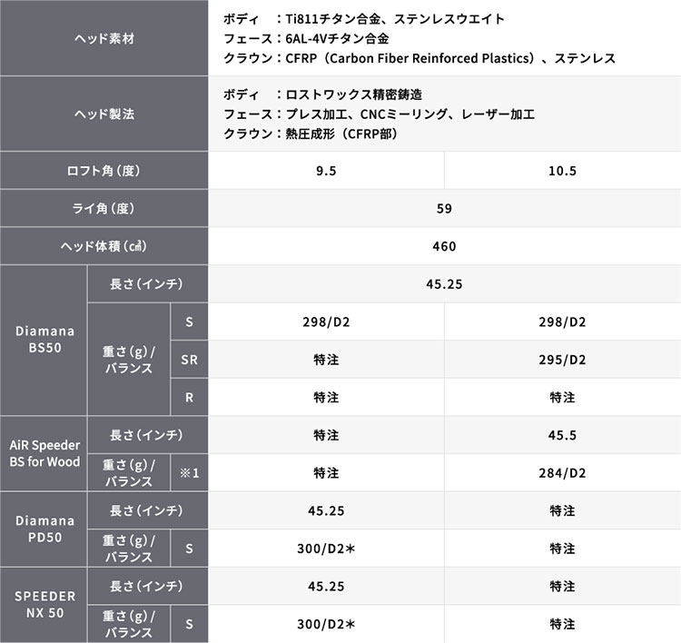 ※ドライバーのスペック値はニュートラルポジションでの値となります。