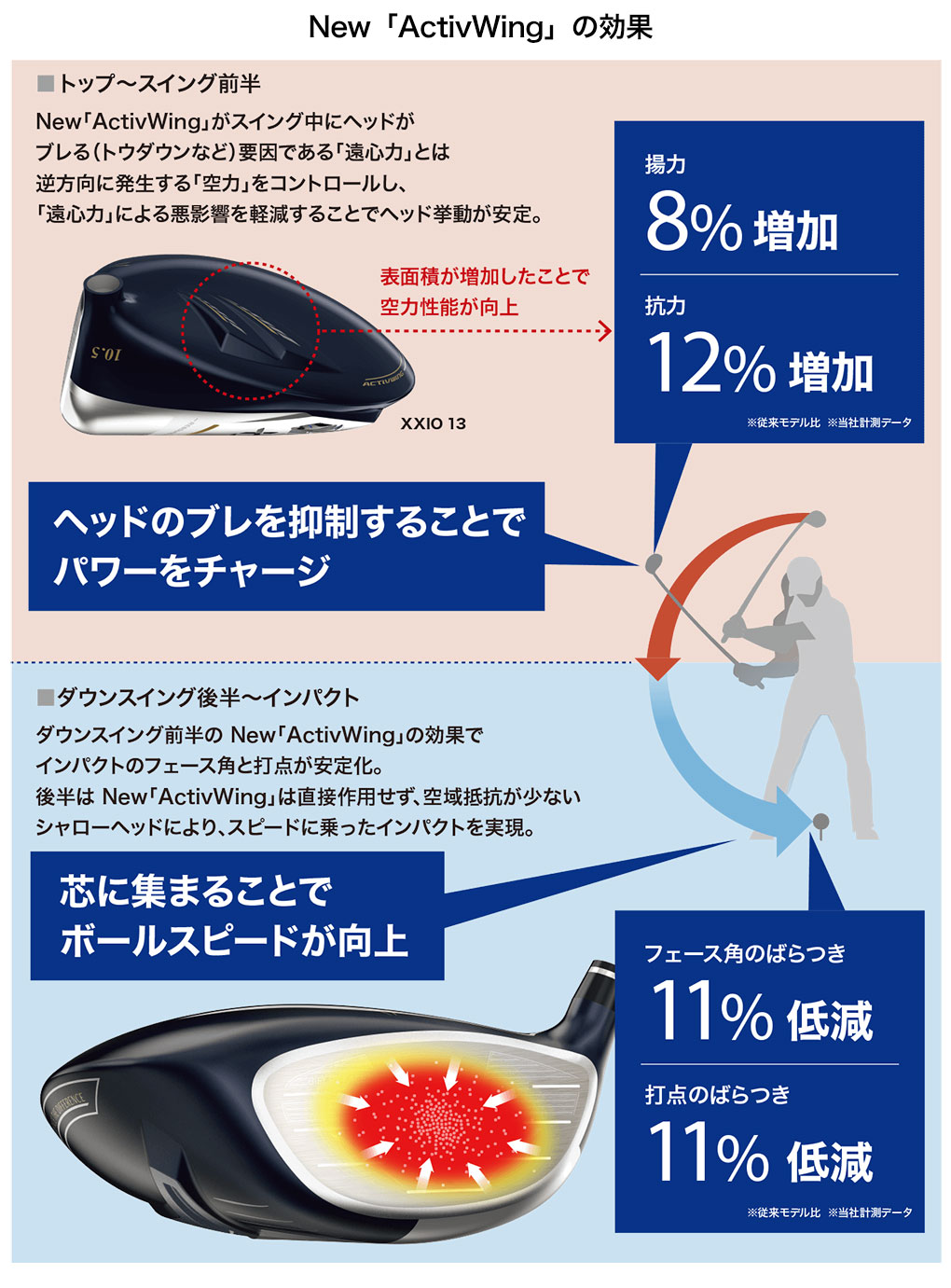 ダウンスイング前半の空力をコントロールすることでヘッド挙動を安定させるテクノロジーがパワーアップ。