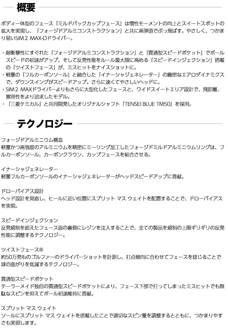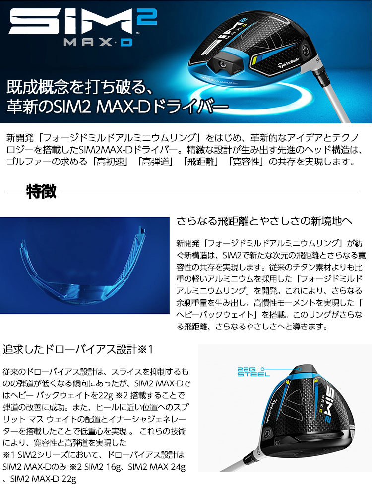 テーラーメイド SIM2 MAX-D ドライバー 460cc VENTUS ベンタス 日本モデル ドローバイアス 日本正規品