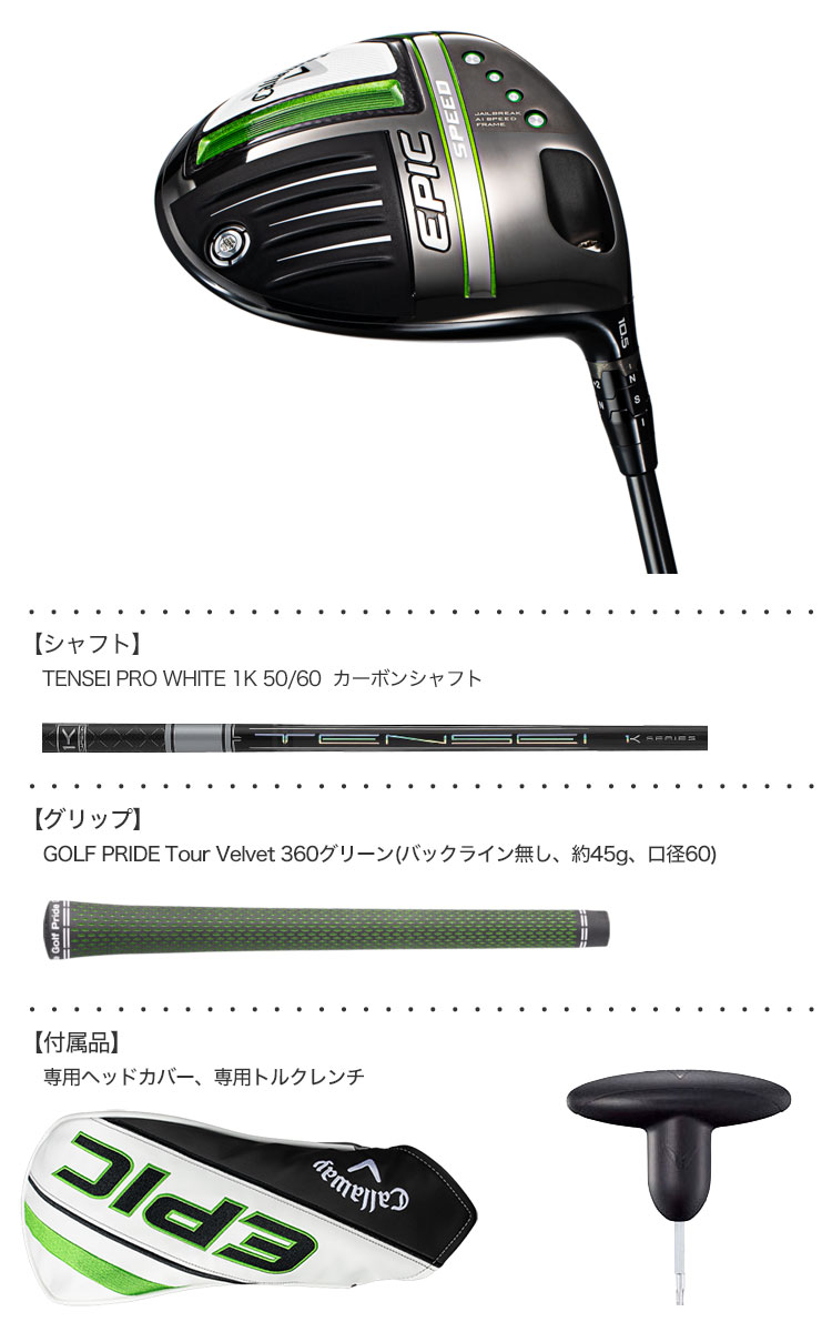 【毎日発送】【特注】キャロウェイ EPIC SPEED ドライバー TENSEI PRO WHITE 1K 50/60 カーボンシャフト装着 日本正規品 【エピックスピード】【トルクレンチ付属】【21EPIC_JP】