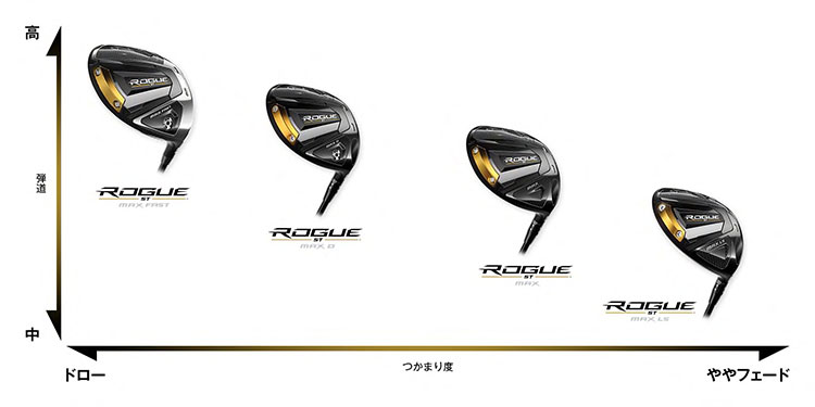 スタンダードモデルの位置づけとなる「ROGUE ST MAXドライバー」は、ややドローバイアスという設定で、これまで以上に高初速でストレートな弾道を、安定して実現します。