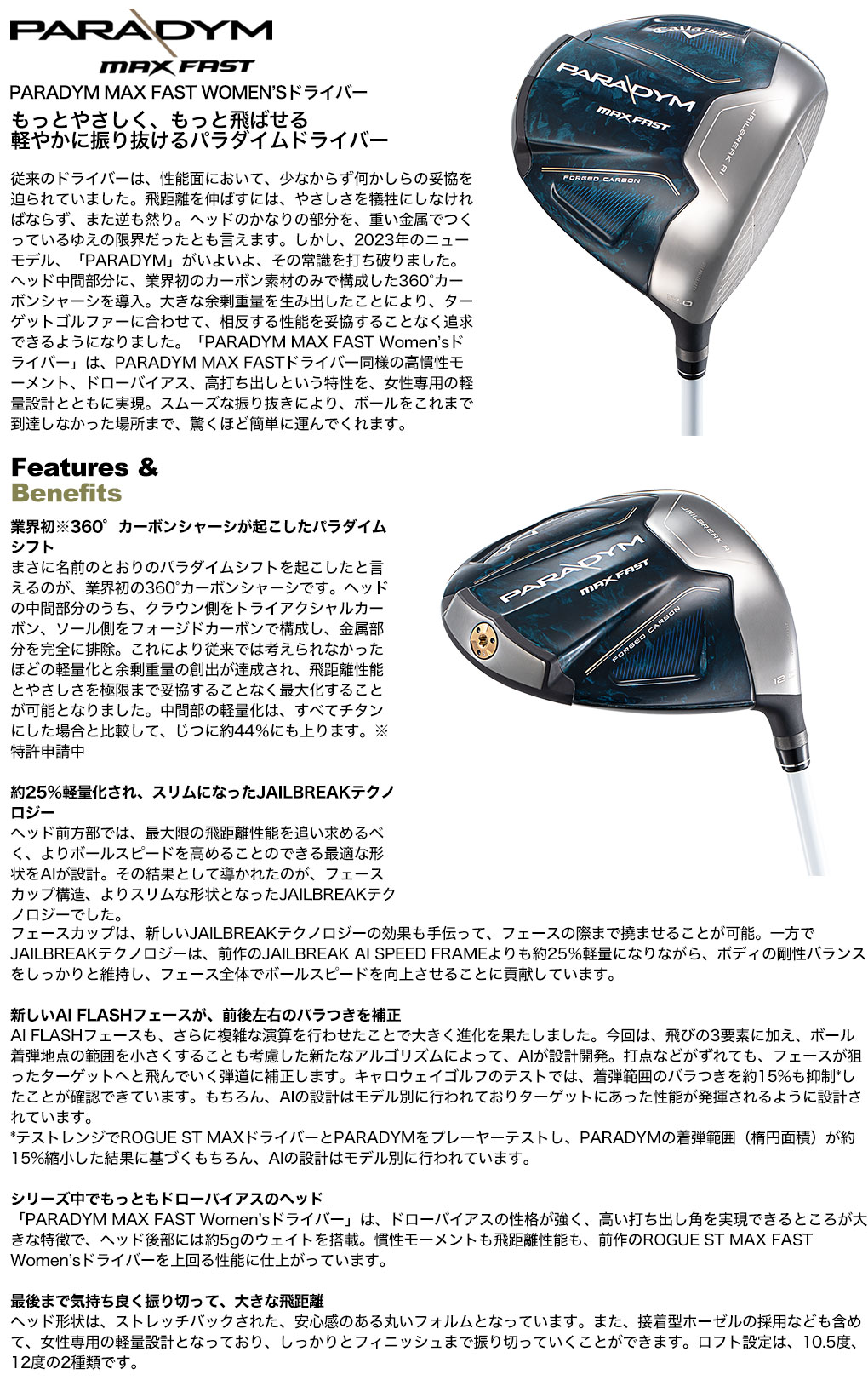 【レディース】キャロウェイ PARADYM MAX FAST Women’s パラダイム ドライバー レディース 右用 ELDIO 40 for Callaway カーボンシャフト 日本正規品 2023年モデル パラダイムMD