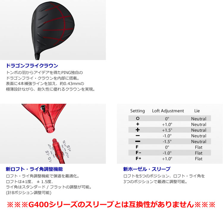 ピン ゴルフクラブ ドライバー 日本モデル G410 プラス 弾道調整機能搭載