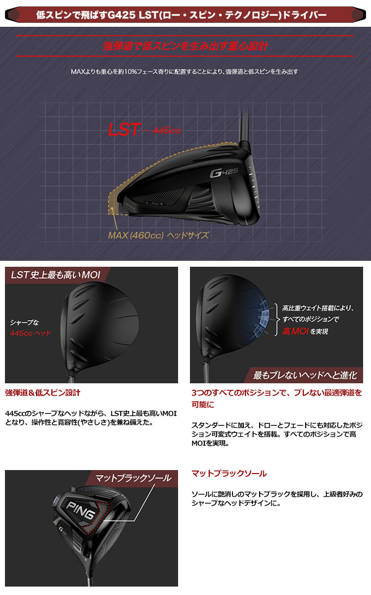 【毎日発送】ピン G425 LST(ロー・スピン・テクノロジー) ドライバー TENSEI CK Pro Orange60 ピンツアー カーボン装着 専用ヘッドカバー 専用トルクレンチ PING ゴルフクラブ 日本正規品 2020年9月発売【445cc】