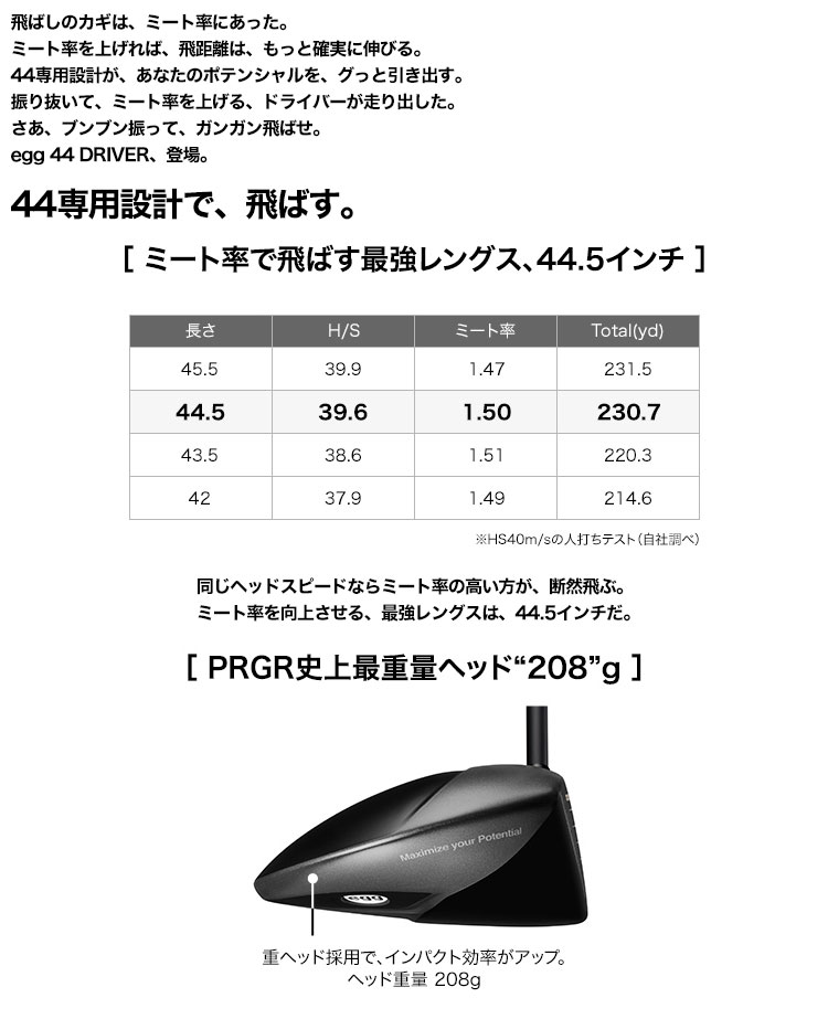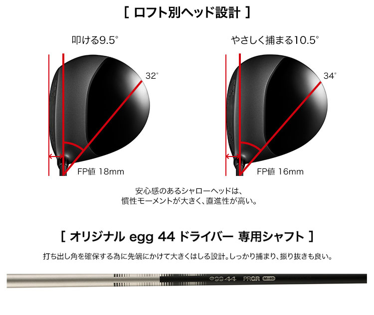 PRGR egg 44 ドライバー オリジナル egg 44 ドライバー専用シャフト 日本正規品 2021年モデル