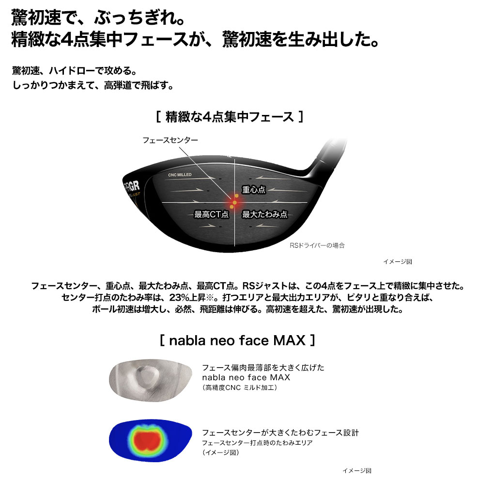 驚初速で、ぶっちぎれ。精緻な4点集中フェースが、驚初速を生み出した。