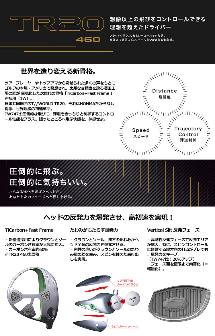 【毎日発送】ホンマゴルフ T//WORLD TR20-460 1W ドライバー VIZARD TR20-50装着 HONMA 2020年モデル 日本正規品【TR20_JP】