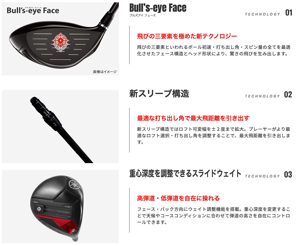 飛びの三要素といわれるボール初速・打ち出し角・スピン量の全てを最適化させたフェース構造とヘッド形状により、驚きの飛びを生み出します。