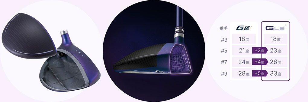 G LEシリーズ初のカーボンクラウンの採用やヘッド内部のホーゼル部分軽量化で生まれたレディースのための「飛び重心」設計で飛ばせるフェアウェイウッドが誕生。