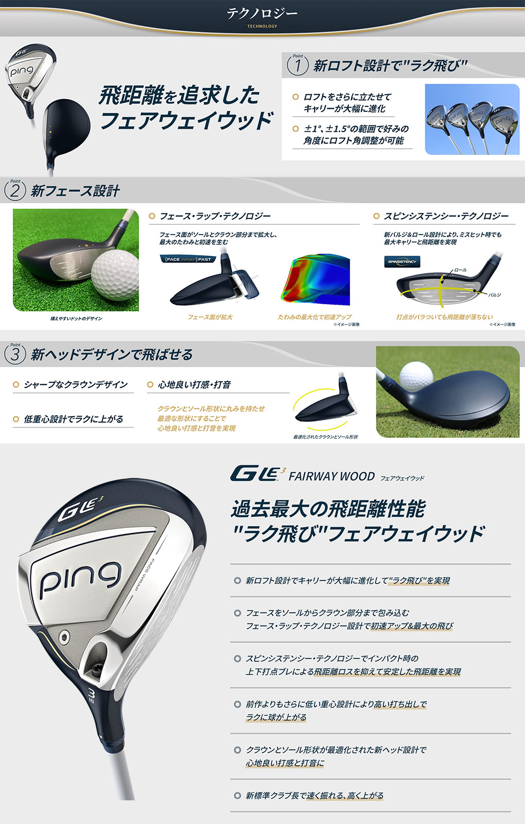 ピン GLe3 フェアウェイウッド レディース 左用 ULT 250 J カーボンシャフト メーカー保証 PING ゴルフクラブ 日本正規品