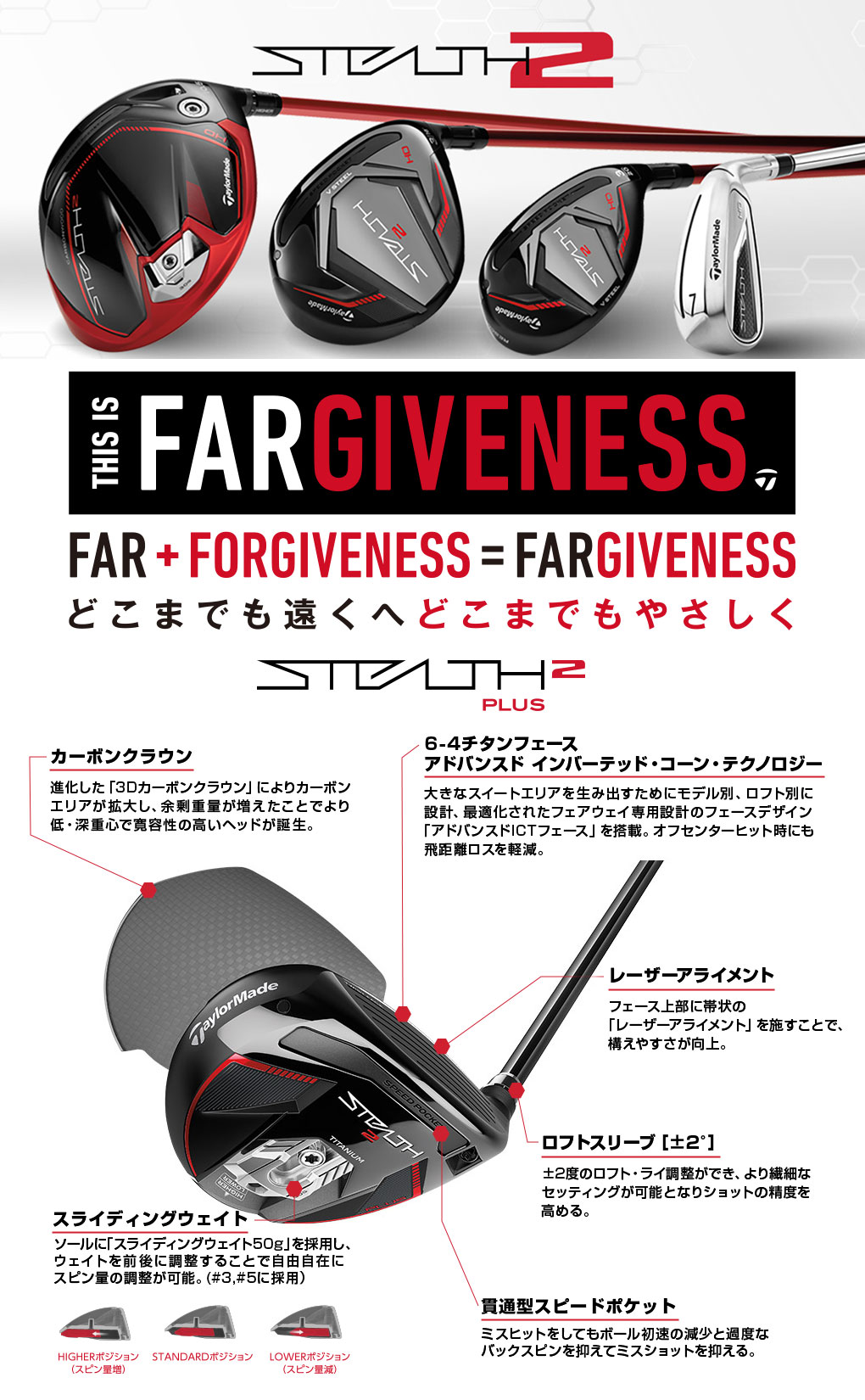 ヘッド素材 / フェース素材 チタン [6-4 ti] + カーボンクラウン + スライディングウェイト(50g) / チタン [6-4 ti]