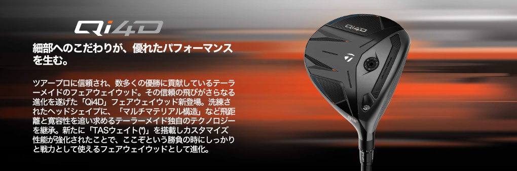 フェース下部のミスヒットに対し、ボール初速を維持し過度なバックスピンを抑える「貫通型スピードポケット」や、ミスヒット時のショットのバラつきを抑え飛距離のロスを防ぐ「ツイストフェース」、さらに余剰重量を生み出しパフォーマンスを最大化させる「マルチマテリアル構造」など、長年ツアーで証明されているテーラーメイド独自のテクノロジーを「Qi4D」フェアウェイウッドでも搭載。