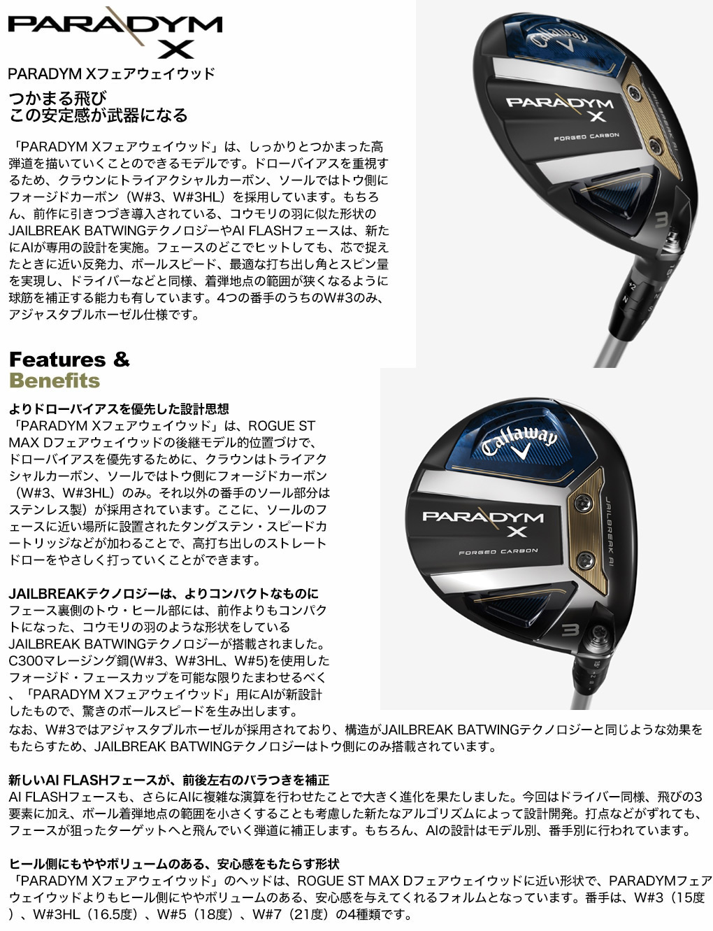 2023年2月発売 フェアウェイウッド ゴルフクラブ パラダイム Callaway 右利き 2023年モデル USモデル