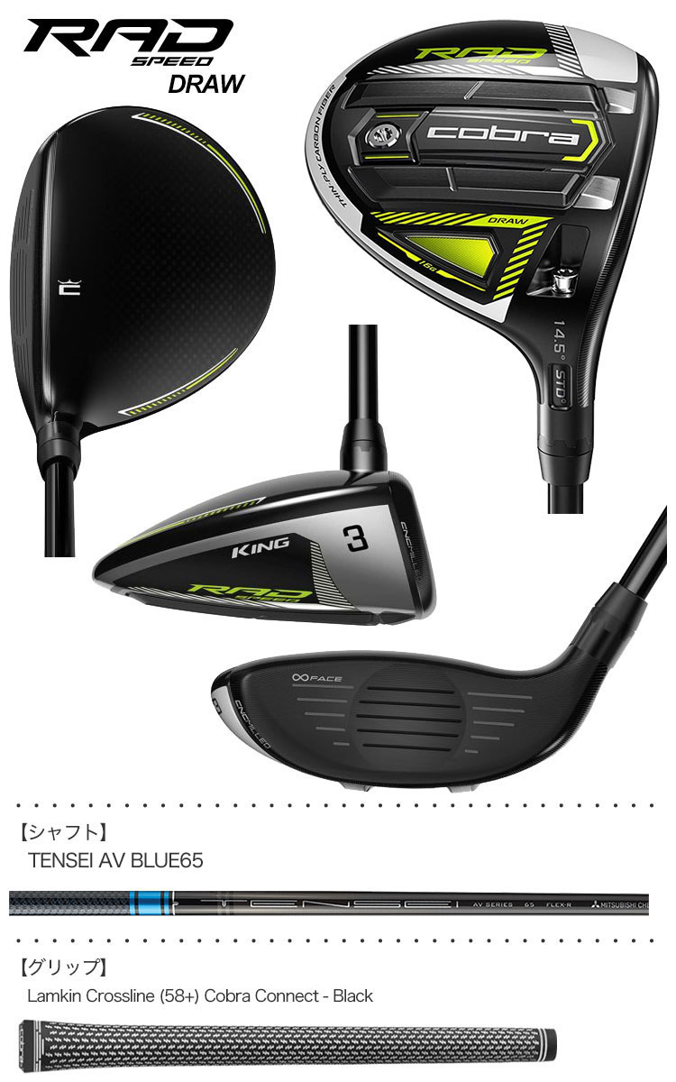【毎日発送】コブラ 2021 KING RADSPEED DRAW フェアウェイウッド BLACK/TURBO YELLOW TENSEI AV BLUE65装着 USA直輸入品【ドローバイアス】【スライス軽減】