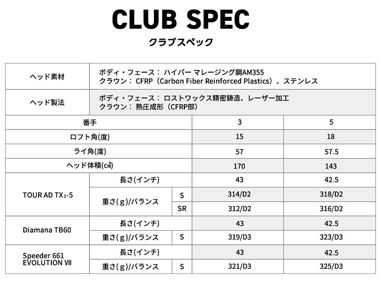 ※TOUR AD TX3-5のスペック値は、3Wの値です。