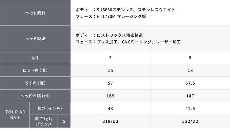 ※ゴルフクラブの重さ(総重量)は目安とお考えください。