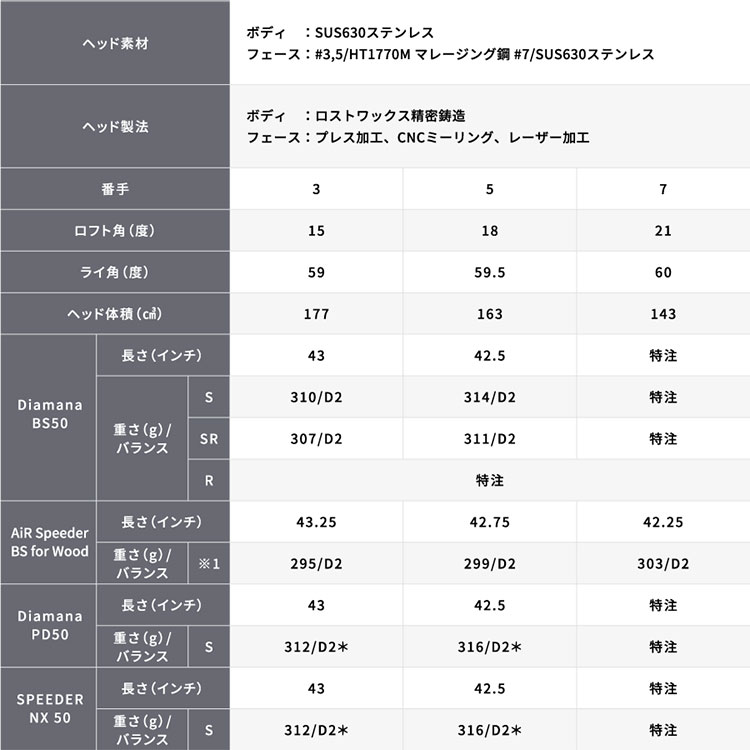 ※ゴルフクラブの重さ(総重量)は目安とお考えください。